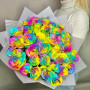 Радужная роза - 35 шт. Дизайнерская упаковка - 1 шт. бант атласный - 1 шт.
