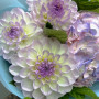 Букет из 7 бело-лиловых георгин с эвкалиптом